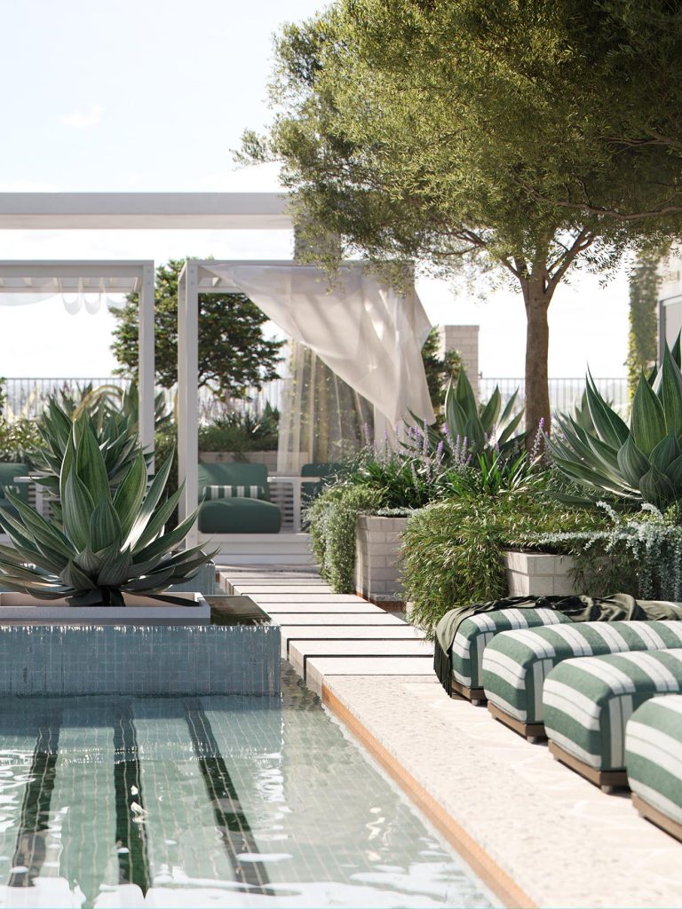 Referencing the rich agricultural landscapes of Murcia alongside the native Woolloongabba ecosystems, the planting palette works to improve air quality, attract pollinating wildlife and creating a unique sense of place in a densifying pocket of Brisbane.