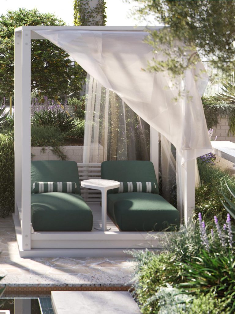 With a strong emphasis on social interaction, the gardens are designed for lounging, enjoying food with friends and family, and chatting – an extension of the indoor functions in a garden setting.